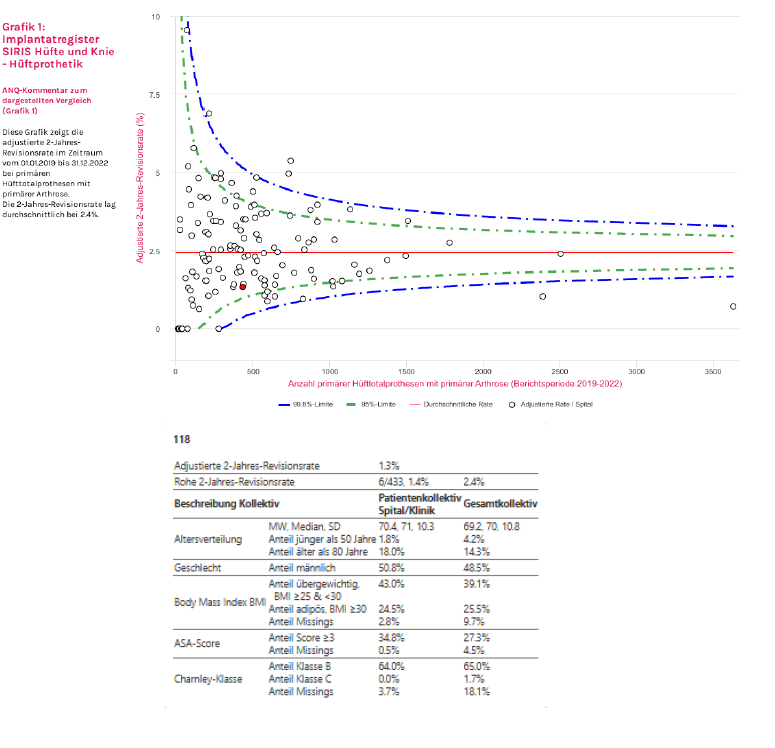 Das bedeutet, dass von der Tell Klinik operierte Hüftgelenke deutlich seltener erneut operiert werden müssen als im gesamtschweizerischen Durchschnitt.